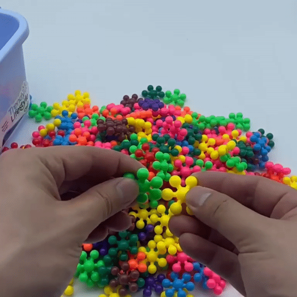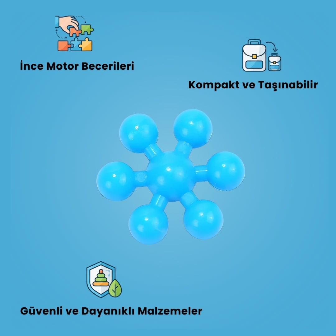 Kutuda, birbiriyle kilitlenebilen çok sayıda renkli molekül parçası bulunur. Parçalar esnek ama dayanıklı yapıdadır ve farklı yönlerden birbirine takılarak çiçekler, halkalar, zincirler ve üç boyutlu tasarımlar oluşturulabilir.